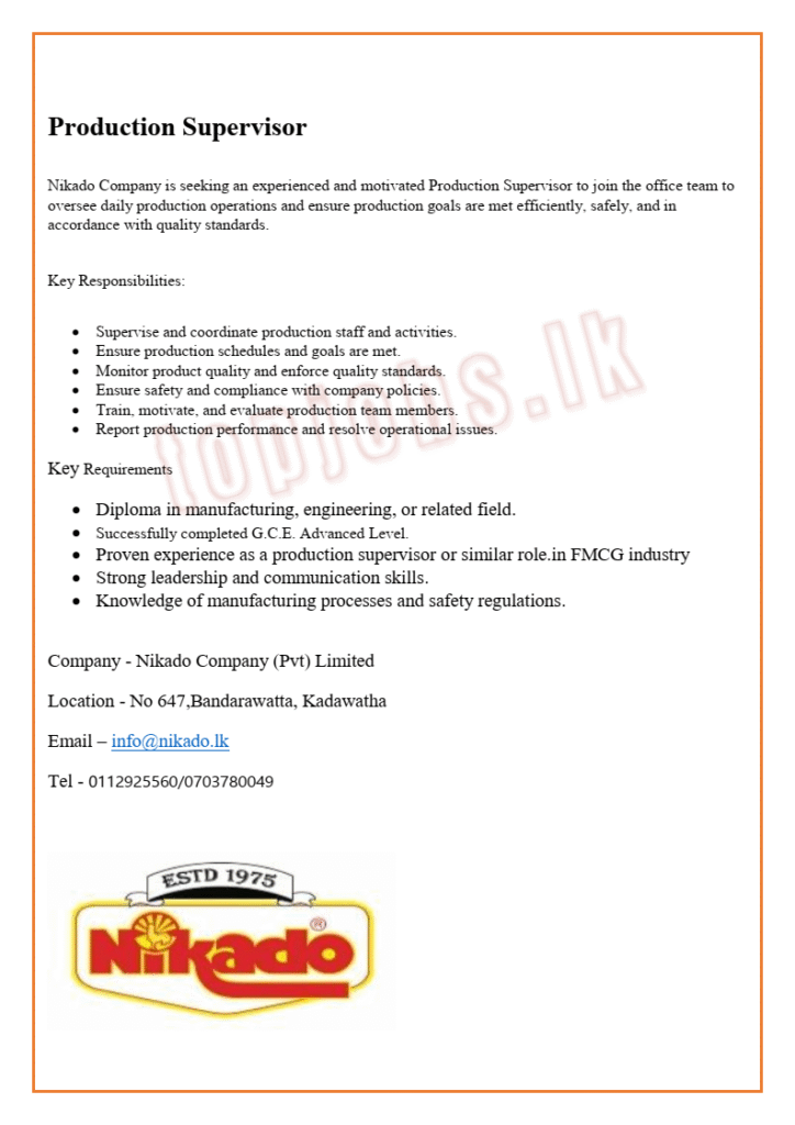Knowledge / Business Process Outsourcing / Manufacturing / Recent Posts Production Supervisor Production Supervisor Read More