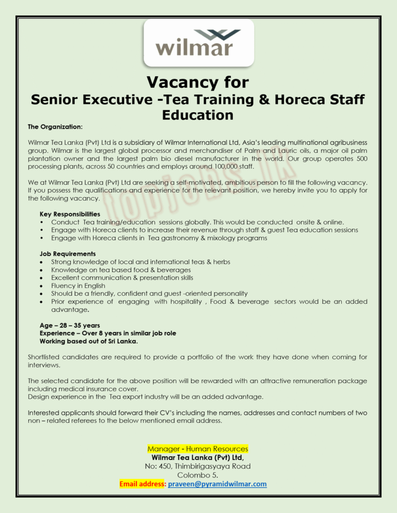 Knowledge / Business Process Outsourcing / Manufacturing Senior Executive – Tea Training & Horeca Staff Education Senior Executive – Tea Training & Horeca Staff Education Read More