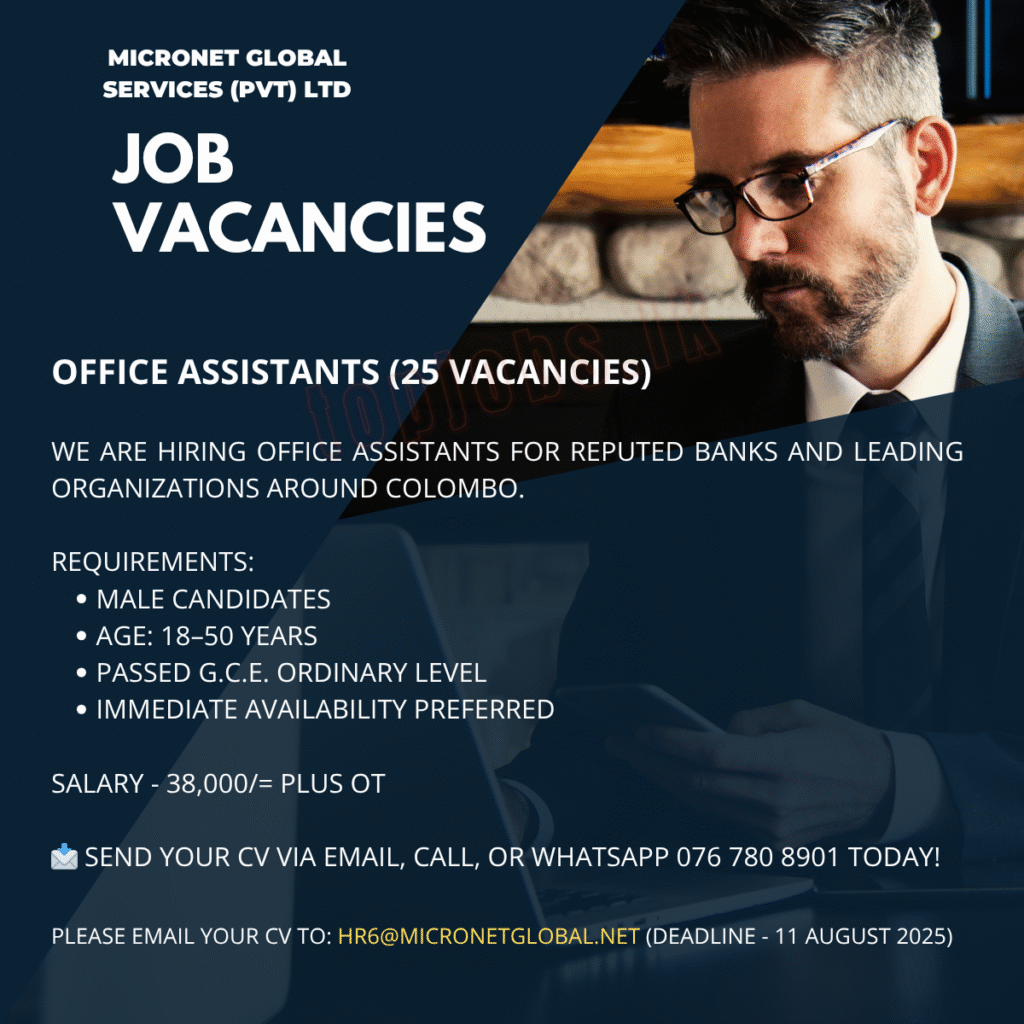 Banking, Investments & Finance / Knowledge / Business Process Outsourcing / Recent Posts OFFICE ASSISTANTS (AROUND COLOMBO) OFFICE ASSISTANTS (AROUND COLOMBO) Read More