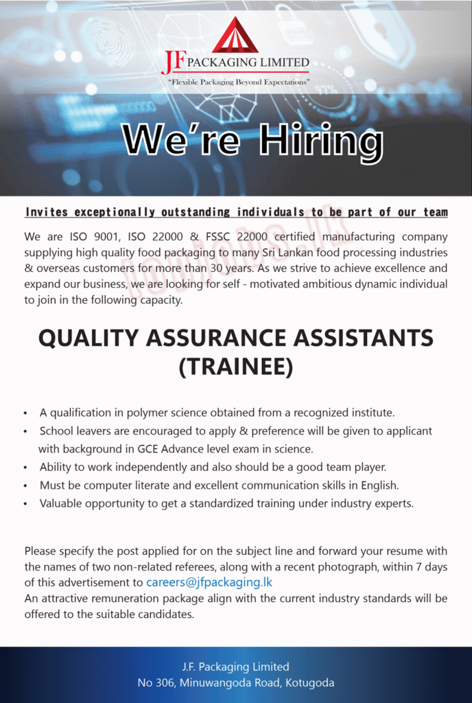 Manufacturing / Recent Posts Quality Assurance Assistants (Trainee) Quality Assurance Assistants (Trainee) Read More
