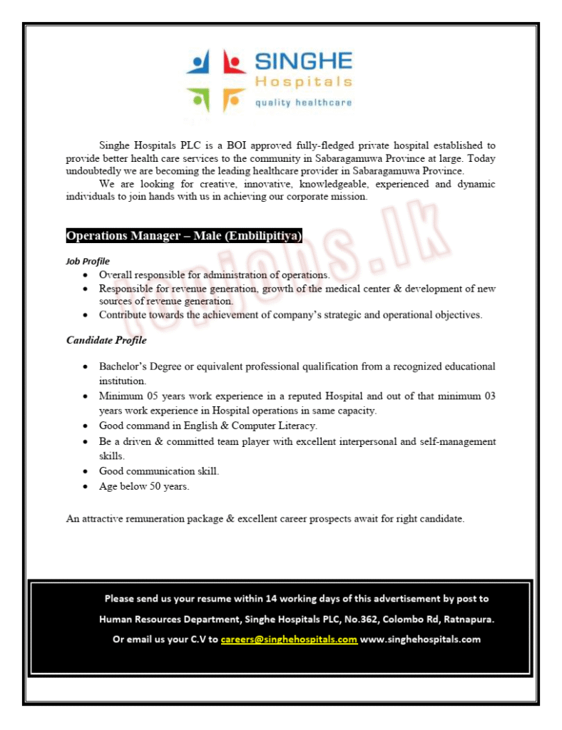 Healthcare Operations Manager – Male (Embilipitiya) Operations Manager – Male (Embilipitiya) Read More