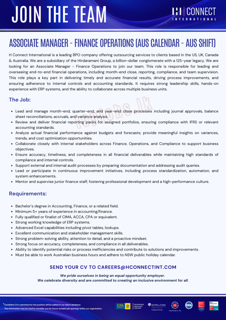 Associate Manager – Finance Operations (AUS Calendar – AUS Shift)