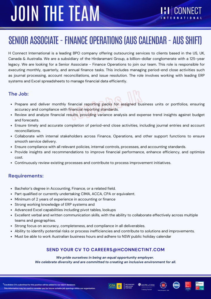 Senior Associate – Finance Operations (AUS Calendar – AUS Shift)