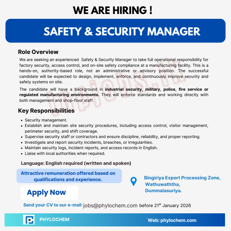 Healthcare Operations Manager – Male (Embilipitiya) Operations Manager – Male (Embilipitiya) Read More