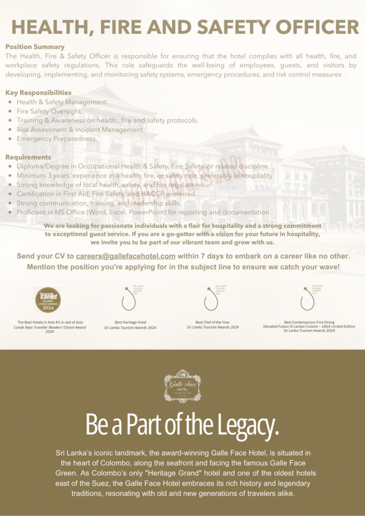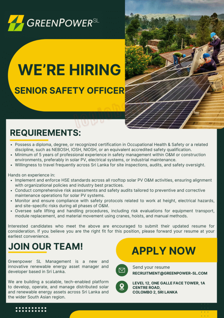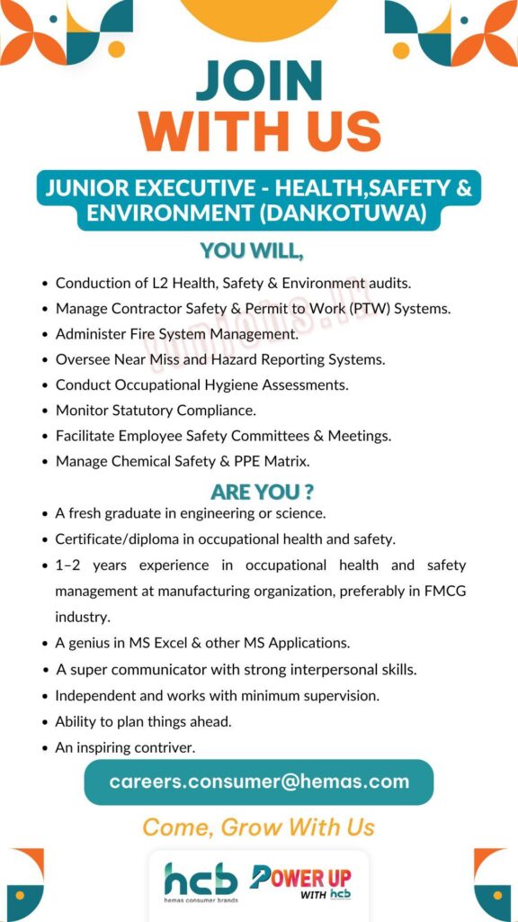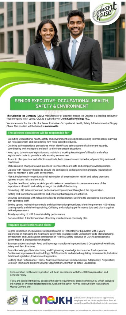 Healthcare / Knowledge / Business Process Outsourcing / Recent Posts Junior Executive – Safety, Health & Environment (Dankotuwa) – Contract Junior Executive – Safety, Health & Environment (Dankotuwa) – Contract Read More
