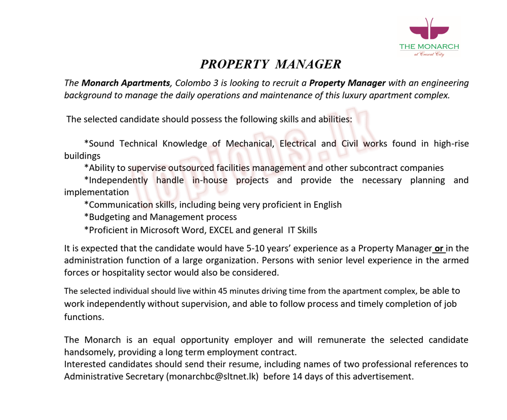 Consultancy Services / Hotel & Tourism / Knowledge / Business Process Outsourcing / Property Development & Real Estate / Recent Posts Residential Manager – Facility Management Focus Residential Manager – Facility Management Focus Read More