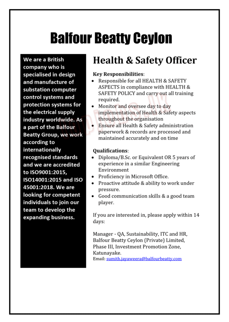 Knowledge / Business Process Outsourcing / Manufacturing / Property Development & Real Estate / Recent Posts Safety Officer Safety Officer Read More