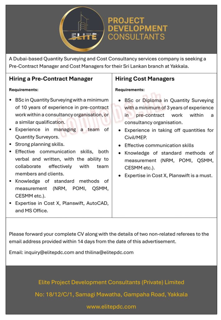 Pre-Contract Manager | Cost Managers