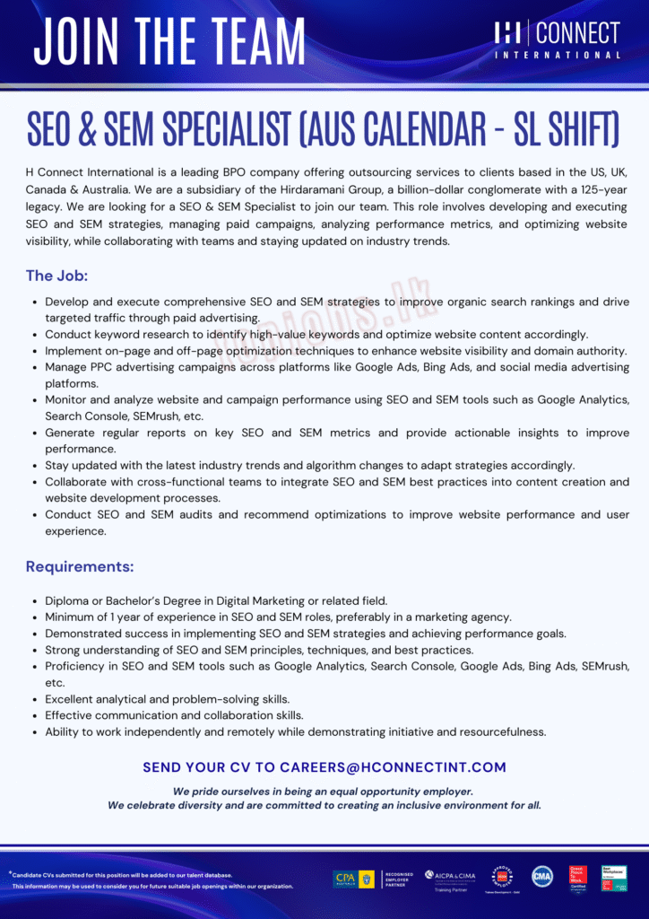 SEO & SEM Specialist (AUS Calendar- SL Shift)