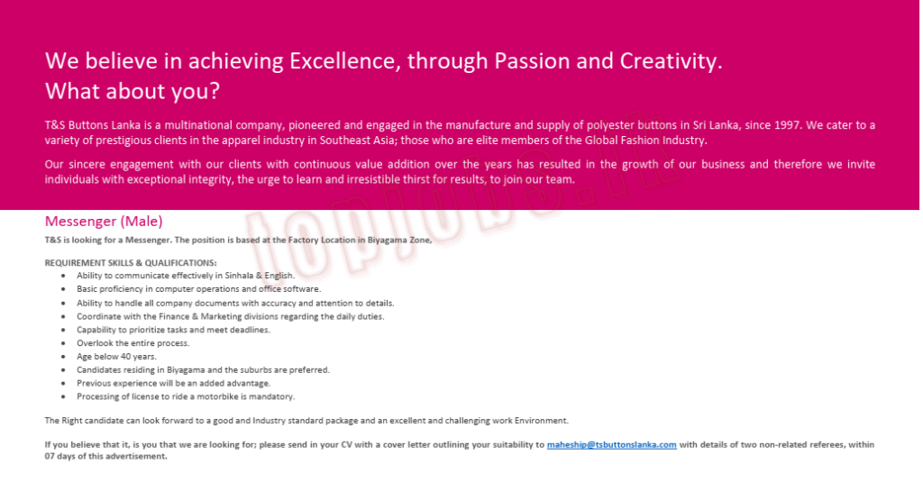 Junior Executive – Supply Chain (Retail Category Buyer)