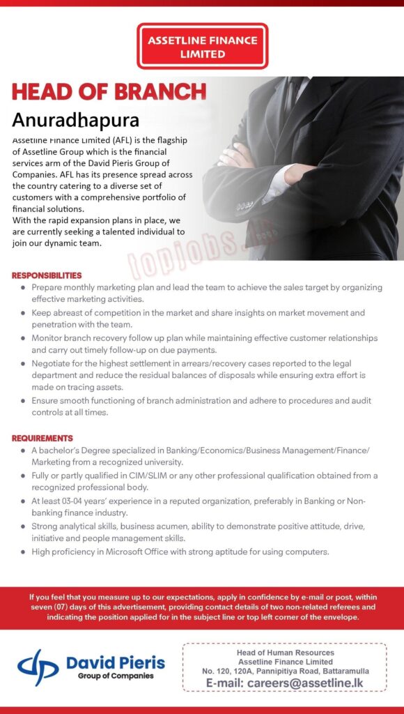 Banking, Investments & Finance / Insurance / Recent Posts Branch Manager – Embilipitiya, Mannar Branch Manager – Embilipitiya, Mannar Read More