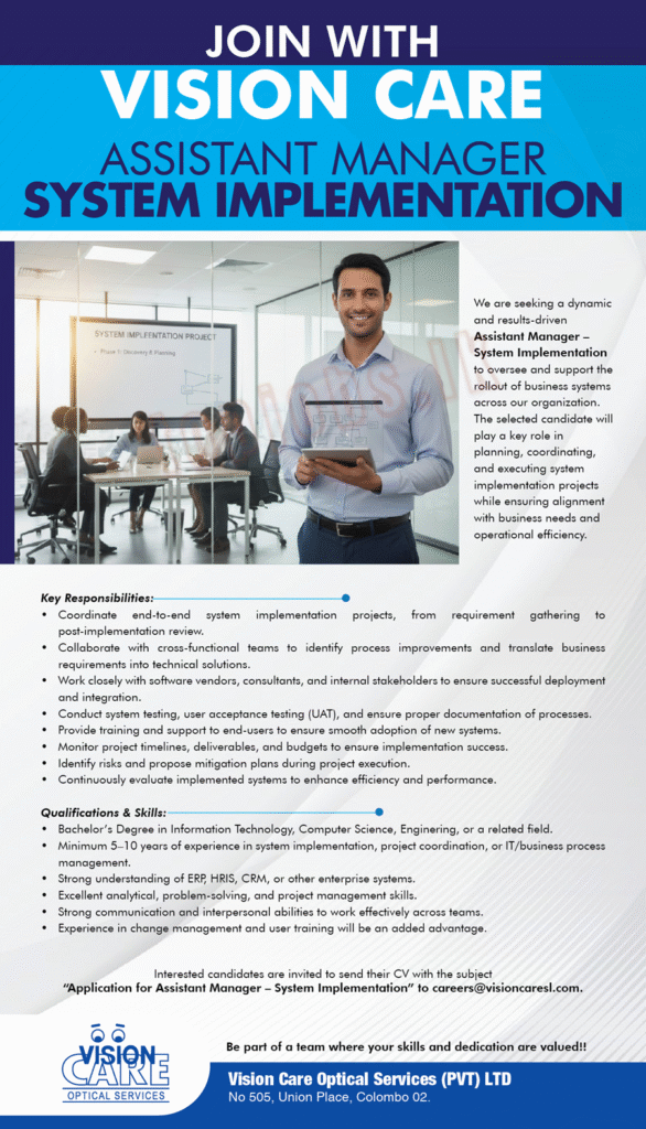 Healthcare / Information Technology / Recent Posts Assistant Manager – IT Business Partner (ERP) Assistant Manager – IT Business Partner (ERP) Read More
