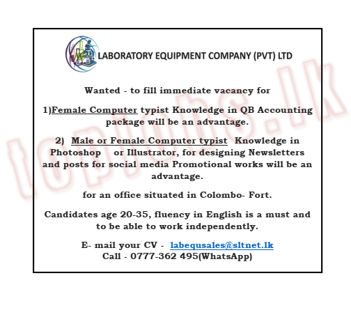 Consultancy Services / Healthcare / Services Computer Typist (Male | Female) Computer Typist (Male | Female) Read More