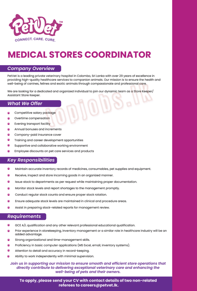 Chemical & Pharmaceuticals / Healthcare Medical Stores Coordinator Medical Stores Coordinator Read More