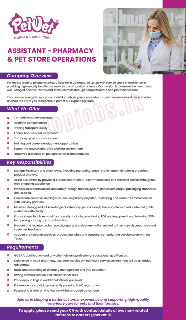 Chemical & Pharmaceuticals / Healthcare Assistant – Pharmacy & Pet Store Operations Assistant – Pharmacy & Pet Store Operations Read More